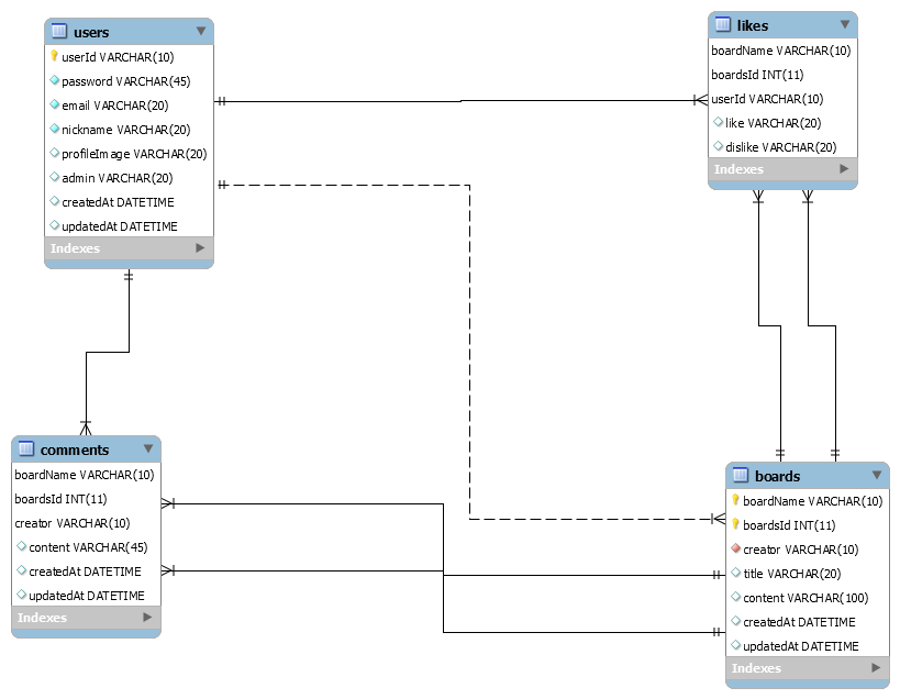 예제) ALTER TABLE likes ADD FOREIGN KEY (userId) REFERENCES users (userId);